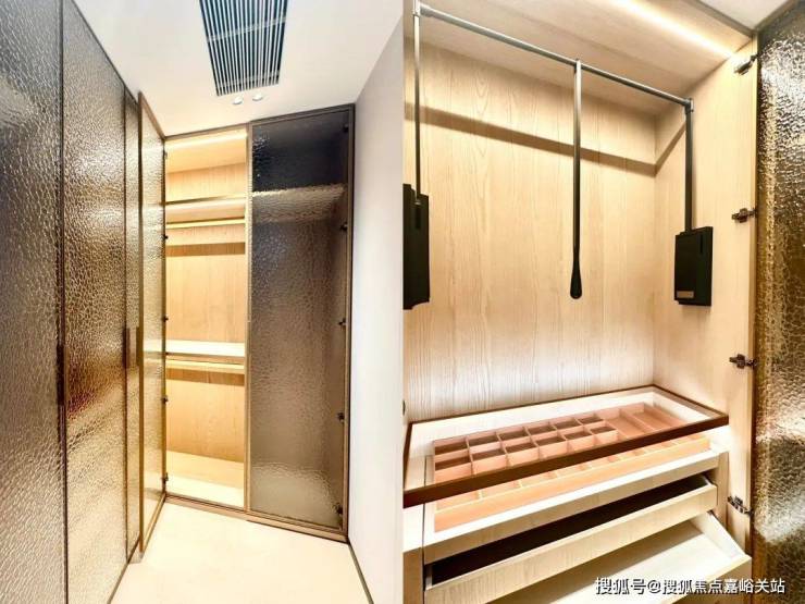 L型衣帽间同样是交付标准,下拉式衣架、感应灯光十分人性化~