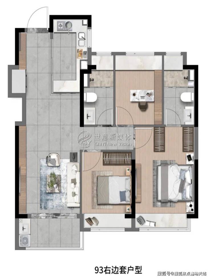 高层建面约93㎡3房2厅2卫