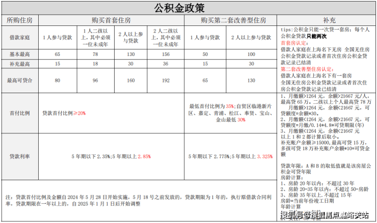 上海贷款政策一览表: