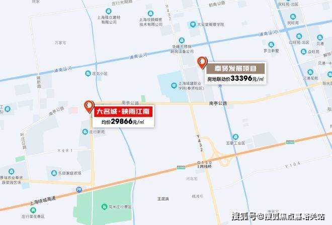 老闵行价格已达到5.9万/㎡,奉贤新城价格也在4万/㎡+,大名城·映雨江南均价29866元/㎡,价格差非常明显。