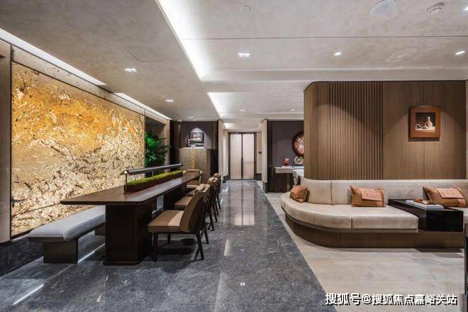 招商时代潮派售楼处电话:400-8824-198精致的迎宾水景、苍劲滴翠的罗汉松,为城市的界面,增添一抹亮色,也让当代年轻人,在享受现代都市生活的同时,感受到家的温暖和亲切。蓝翡翠的奢石,以深邃幽远的尊蓝色基底,尽显光彩下的神秘奢华;而顶部异形的仿铜星空顶设计,用香槟金色斜角造型铝板搭配熠熠灯光,碰撞出科技与艺术的美学。