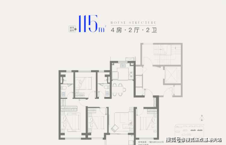 7幢:在售户型115㎡ (四房两卫 一梯两户)