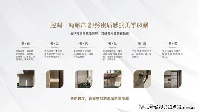 的精装标准简直奢华至甚,让人惊叹不已!选材海派六奢:奢玉、奢石、奢镜、奢板、奢皮、奢玻六大海派奢享体系一应俱全!
