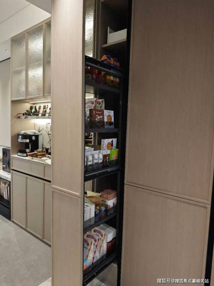 本次还增加了非常实用的零食柜和餐边柜, 未来业主在这里可以作为自己的一个日咖夜酒区域。