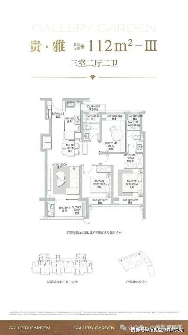 项目舍弃了传统逼仄的百平三房,将最小面积提升到了建面约112㎡,而这12个平方的提升,让整体户型的空间尺度感达到了新的高度。