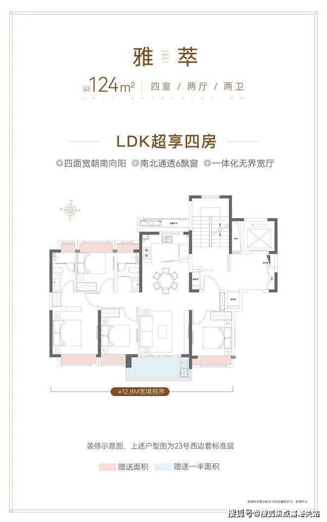 124㎡LDK超享四房:约3.6M阔尺宽厅/约12.8M南向面宽,宽享温暖四季