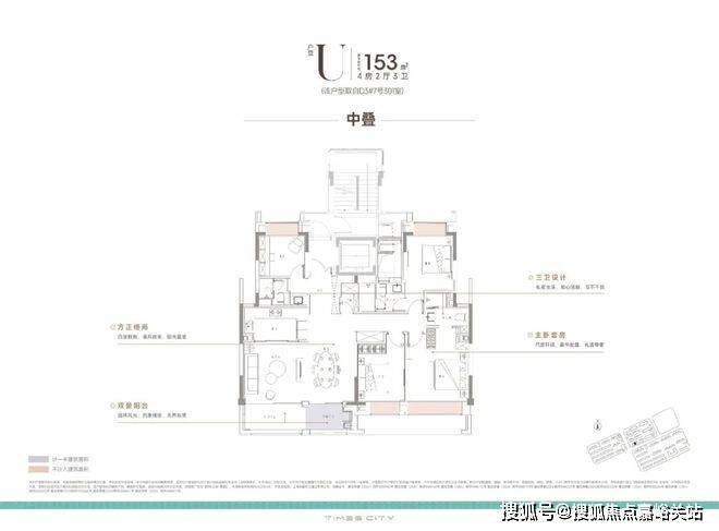项目的中叠四开间朝南,超大IMAX的采光面,妥妥市区豪宅大平层的尺度感。