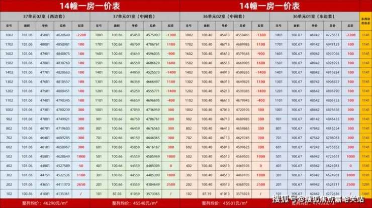 各个楼层的一房一价以及各楼层之间的价差,独家君也给大家整理好了,总结来说注意以下几点: