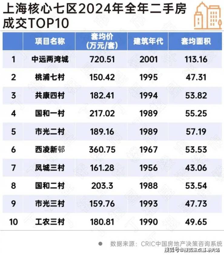 聚焦到具体成交上来看,2024年全年成交前20的项目中仅中远两湾城和仁恒河滨城套均总价较高,其余房源大多为总价300万元/套以内,建筑年代在2000年以后的郊区房源。这些房源中约一半的面积小于70平方米。