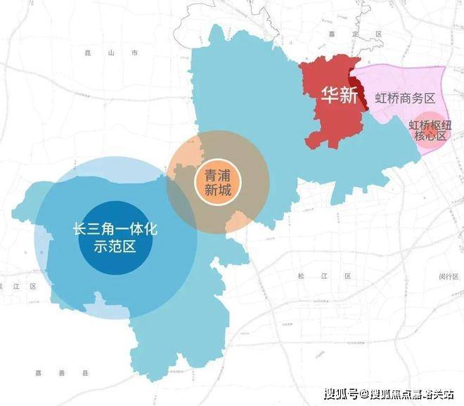 来看华新所处的地理位置,东面就是虹桥主城区,直线距离国家会展中心5公里。东侧则是长三角一体化示范区,承接国家战略。