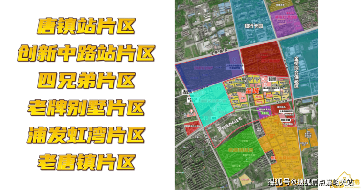 如今的唐镇可以清晰分为六大片区,高热度的是 唐镇站片区、创新中路站片区、四兄弟片区, 其余还有 老牌别墅片区、浦发虹湾片区、老唐镇片区。