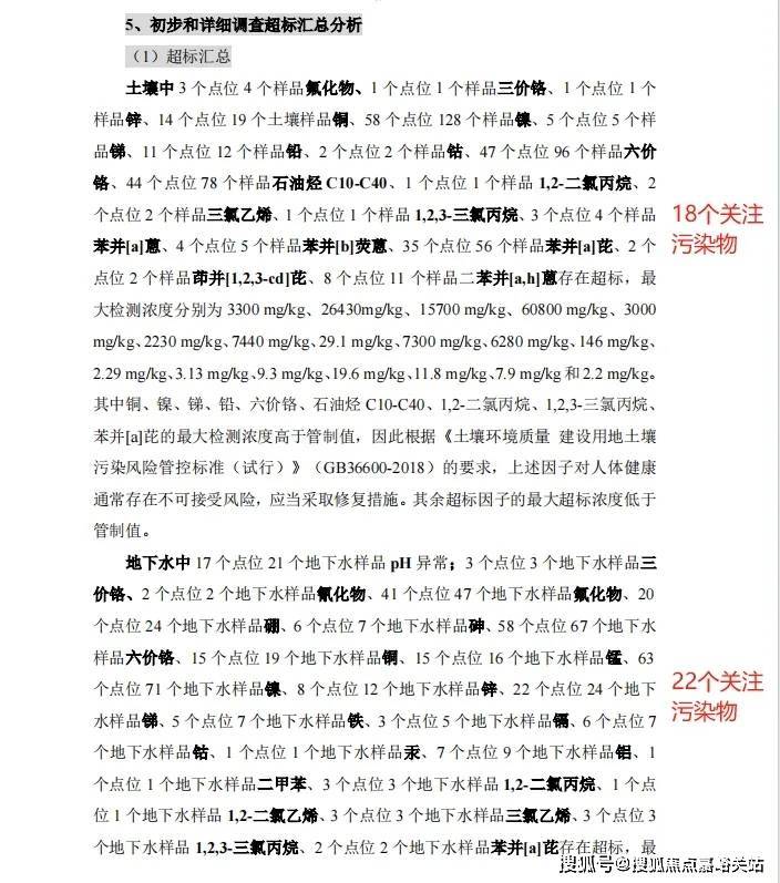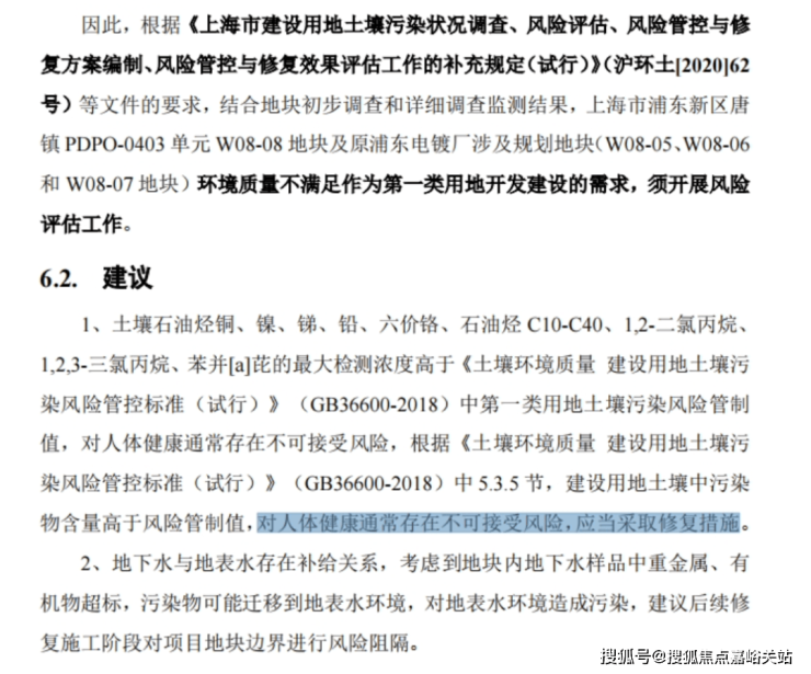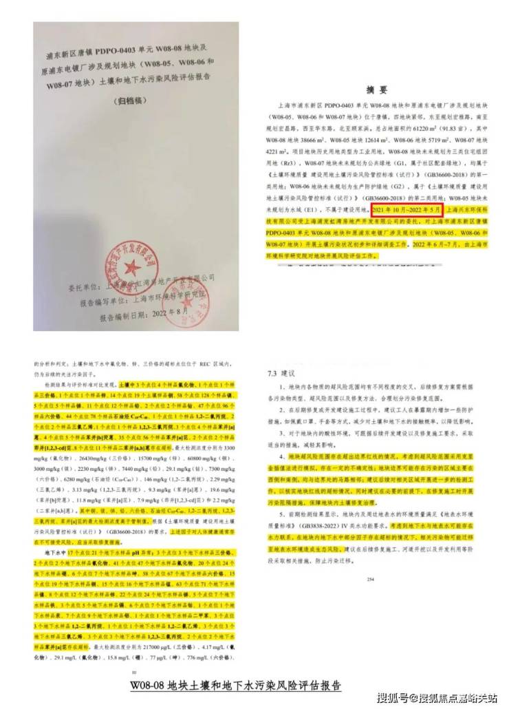 通过申请信息公开,业主们拿到了2022年8月由上海市环境科学研究院出具的风险评估报告,其结论是W08-08地块土壤中包括苯并(a)芘、苯并(a)蔥等芳香烃和铜、锑、锌、钴、镍等重金属,该地块土壤及地下水中的重金属及各污染物中有16种超过人体可接受水平。