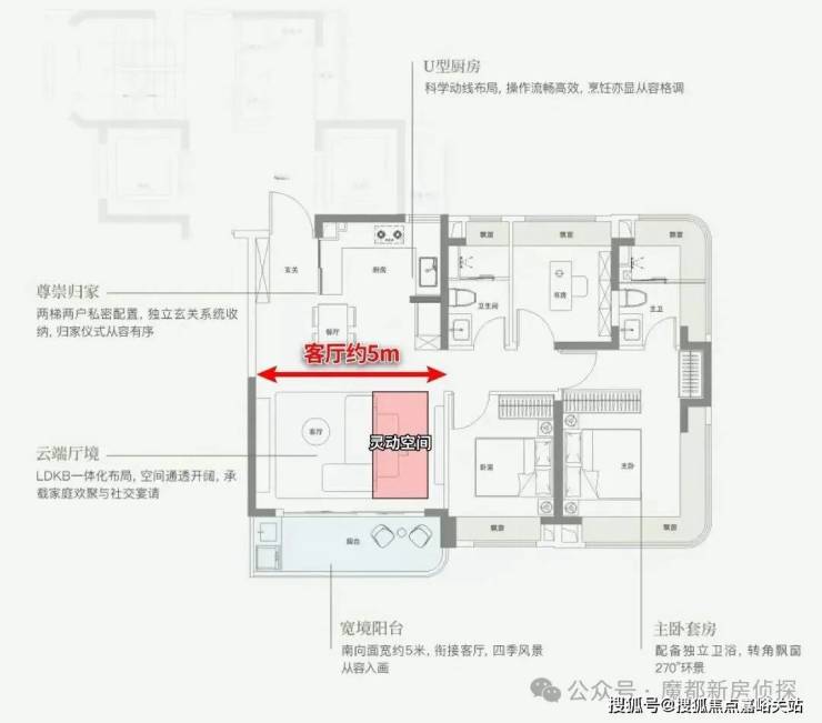 并且,整个户型的私密性、尺度感都极强,我们概括了几点: