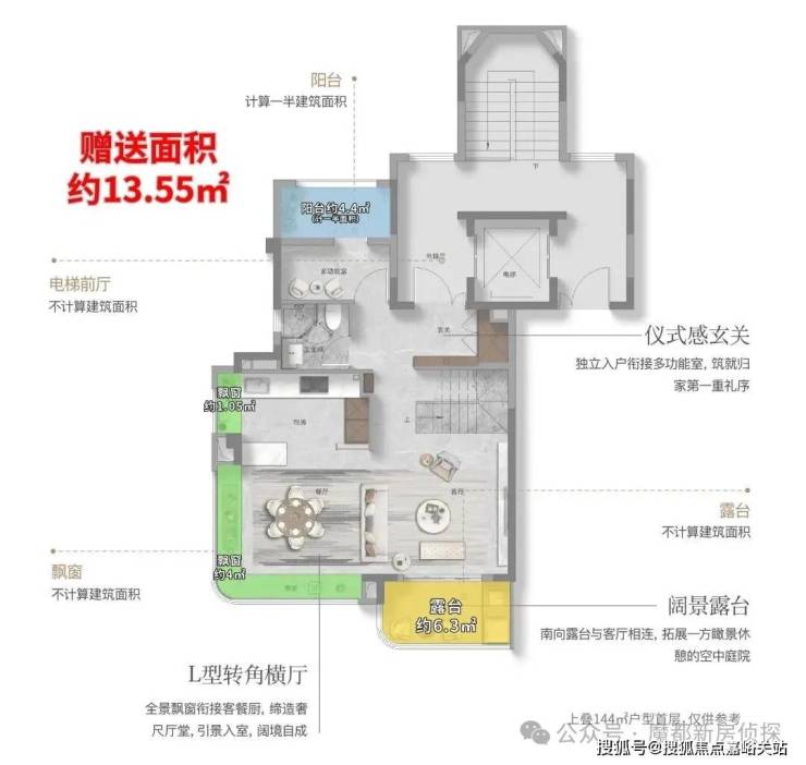 这个户型的附赠率,更高! 实际可使用面积高达约234 ㎡,实得率超139%