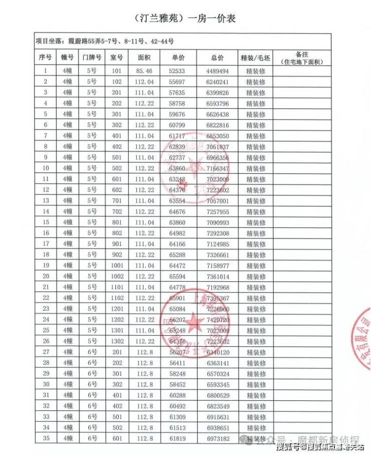 附全套一房一价表: