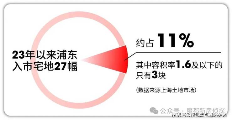 据上海土地官网显示,2023年至今整个浦东入市宅地27块, 其中容积率1.6及以下的只有3块,占比仅约11% ,其中之一就是金海雲墅。