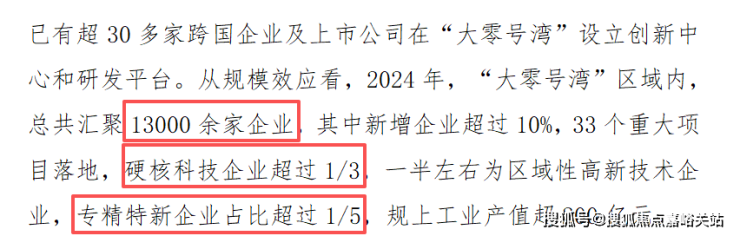 数据最有说服力:你看看人才数量,且截止2024年,大零号湾已汇聚13000多家企业,关键的是,新增企业中1/3都是科技企业!