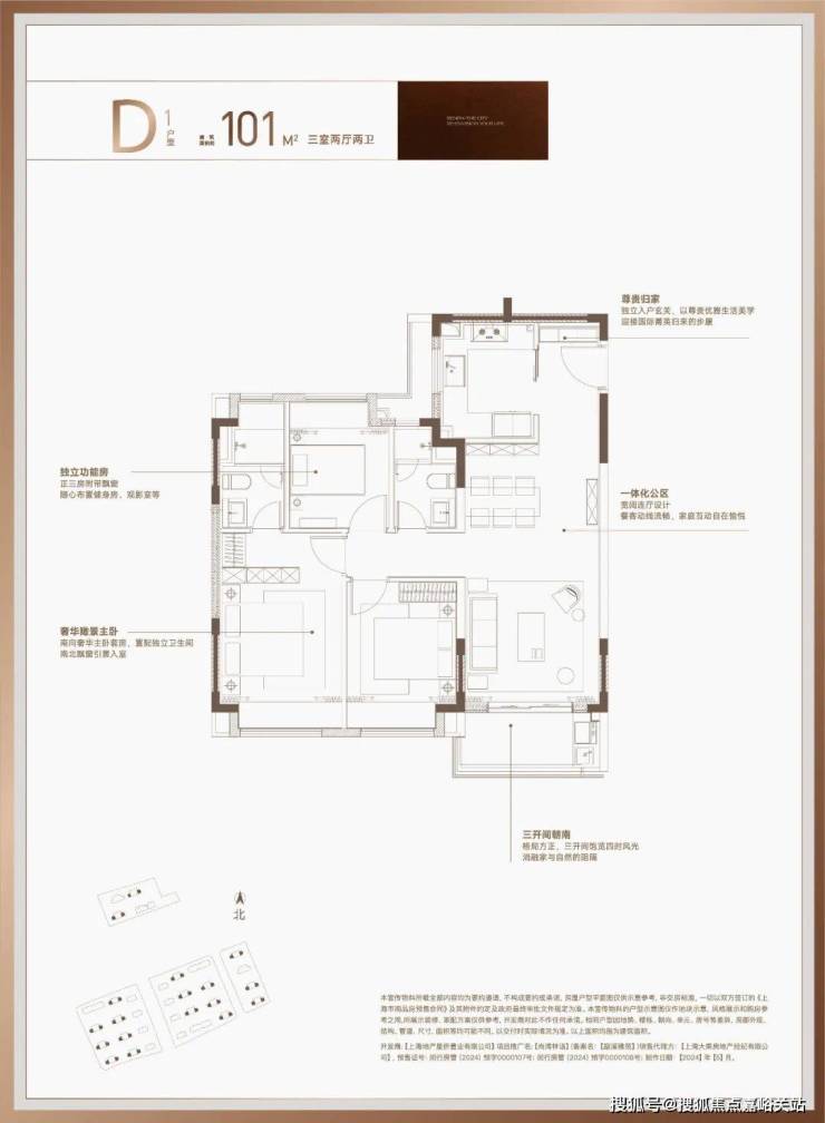 就拿项目爆款101户型来说,凭借约81%超高得房率,直接跳出了常规百平米户型的“2+1”局限,打造出真正的改善型正三房!