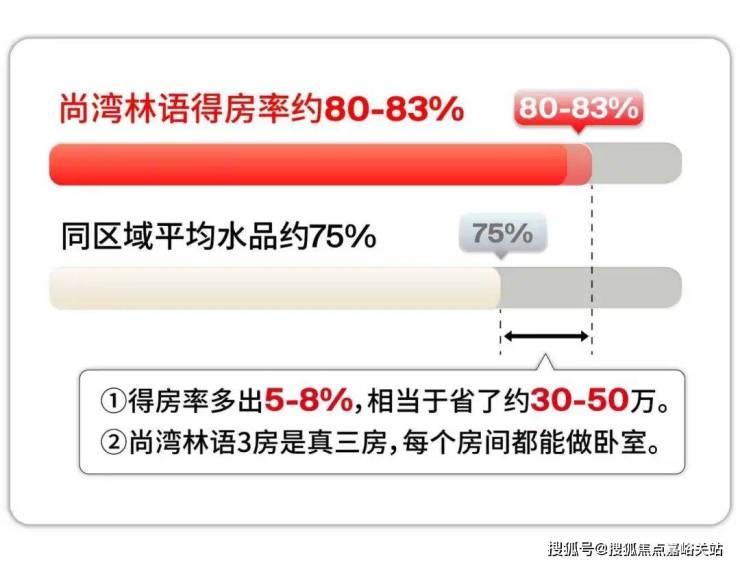 区域内新房得房率平均约75%,以尚湾林语百平米约81%得房率算,比同区域项目多赚6㎡!相当于一间书房;要是换算成房款,直接省下30-40万!相当于花同样的钱,买更大的空间,性价比直接拉到顶!