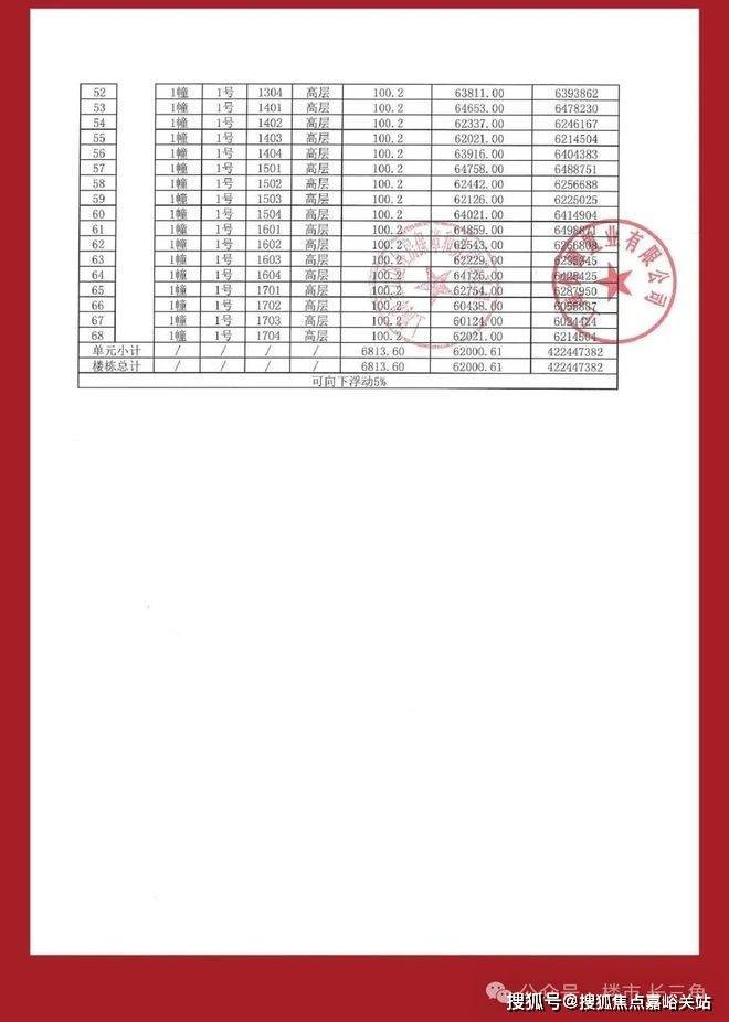 一房一价表: