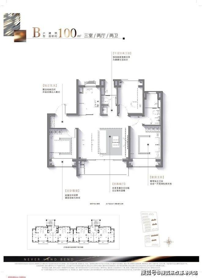 招商云澜湾售楼处预约电话:400-8824-198建面约100㎡宽厅三房,改善家庭至优选:在南向三开间的基础上,该户型“创新横向宽厅,营造百平米少有的客厅尺度“打造3.5南向面宽。