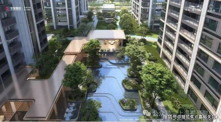 项目景观由 朗道国际团队打造!灵感来自松江通波塘的水系,将 海派的水韵和自然美学融入其中!