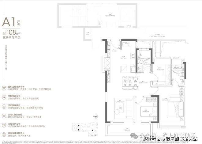 108㎡的入门级三房,起步门槛相比润府提高不少。