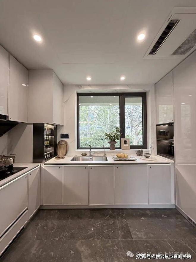 比如,厨房配了珍珠白吊柜、三组抽屉式拉篮合理搭配,调料架收纳、大容量踢脚抽、清洁用品收纳区,米面粮油、碗碟刀叉都可完美隐身。