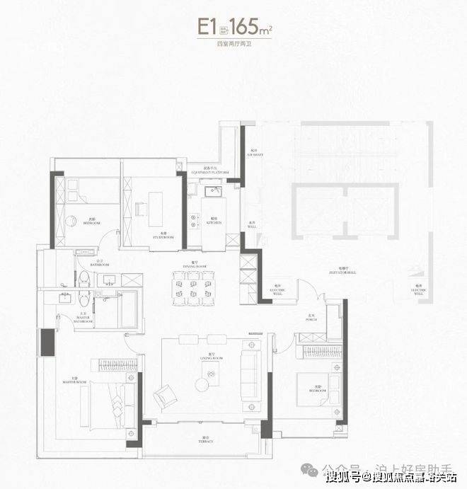 来到165㎡个户型,已经上升到上海主流的大户型改善面积段,但看设计思路,可以看出是为满足多胎家庭成长而服务的。