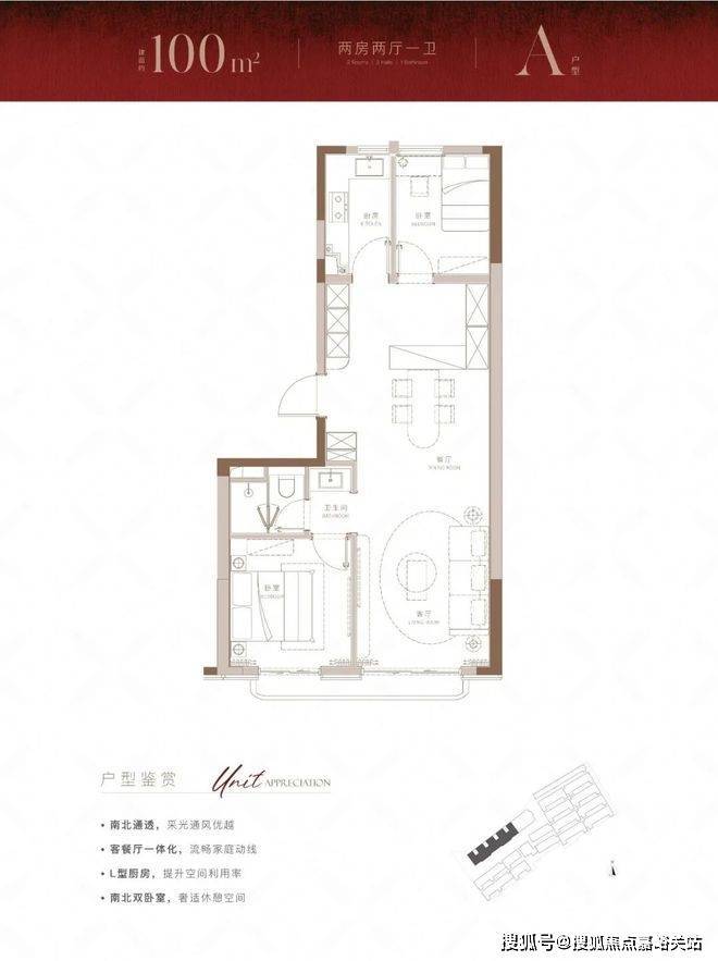 建面约100m²大2房户型,带来的不仅是方正的布局,也为购房者带来了体验感超绝的视野和采光。