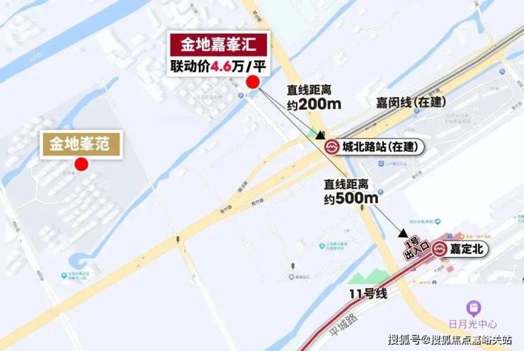 项目与嘉闵线(在建)城北路站直线距离约200米,与11号线嘉定北站直线距离约500米,皆在步行可达的范围内。