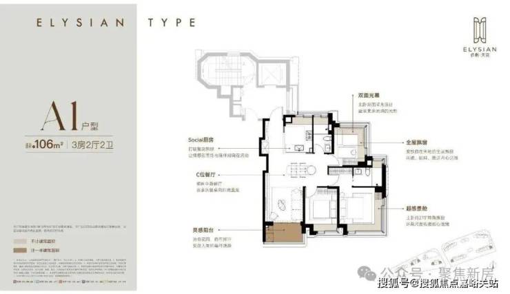 南北两个房间都做到270°飘窗,采光和景观面极其优秀。