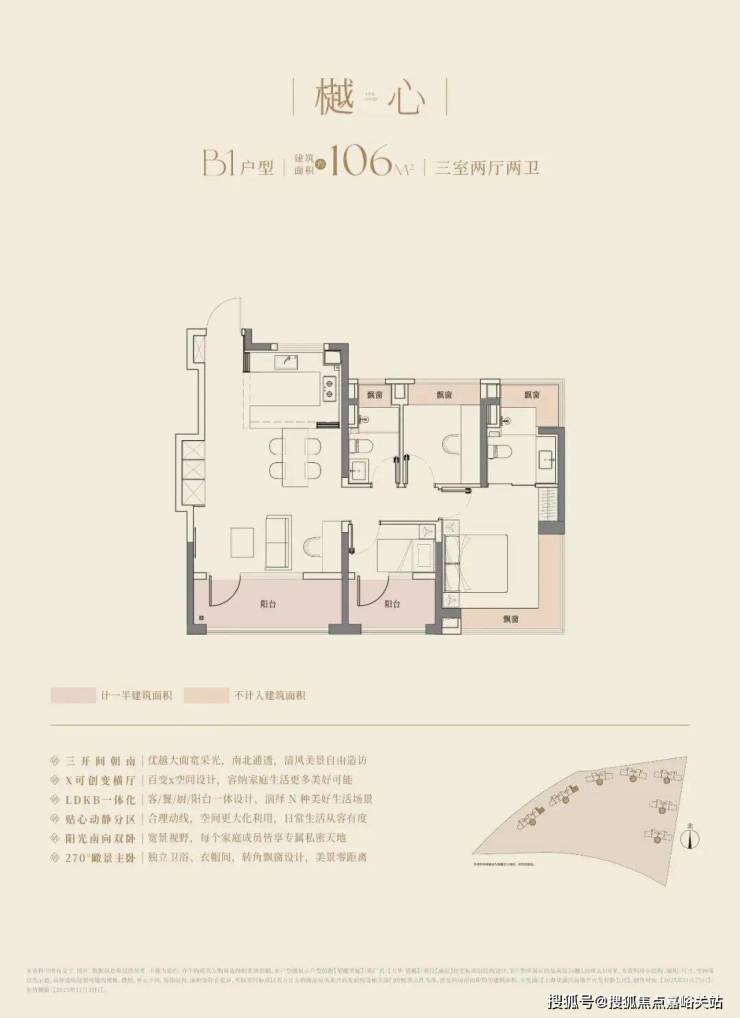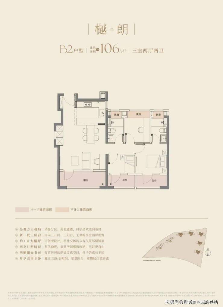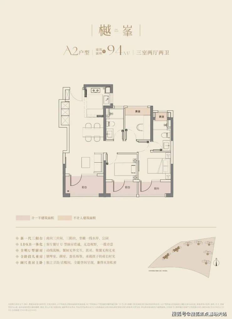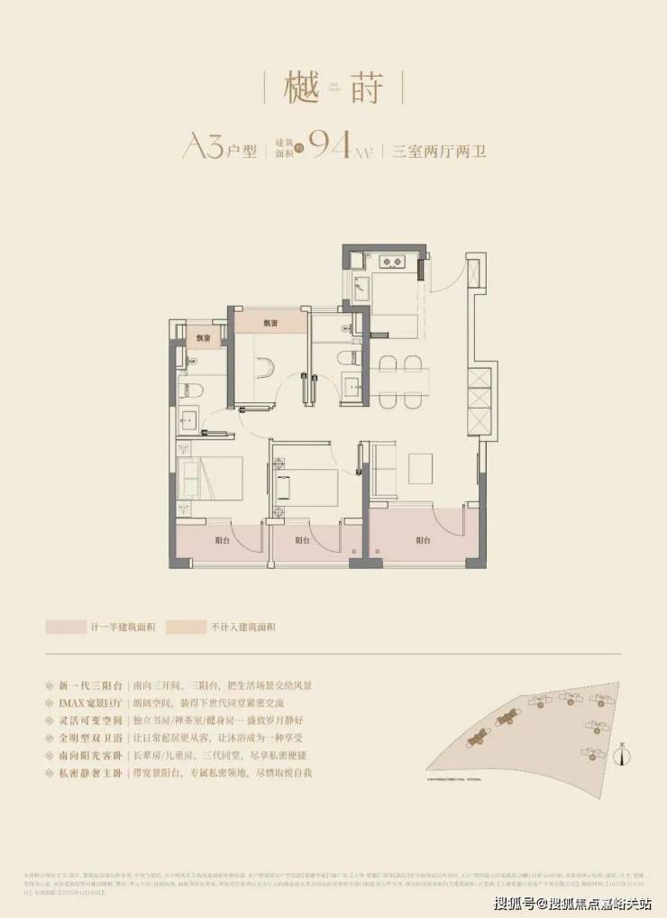 大华望樾的高层建面约94㎡户型做到了三阳台的配置;