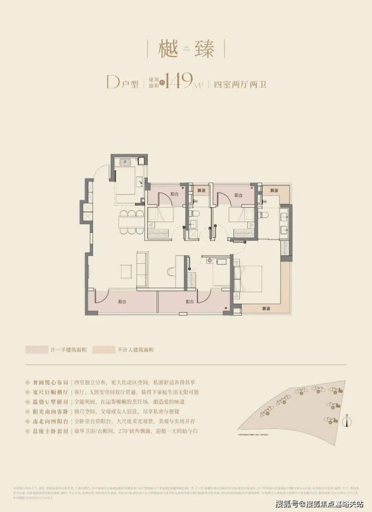 建面约148㎡户型更是做到了惊人的四阳台配置,远远超过新规标准。