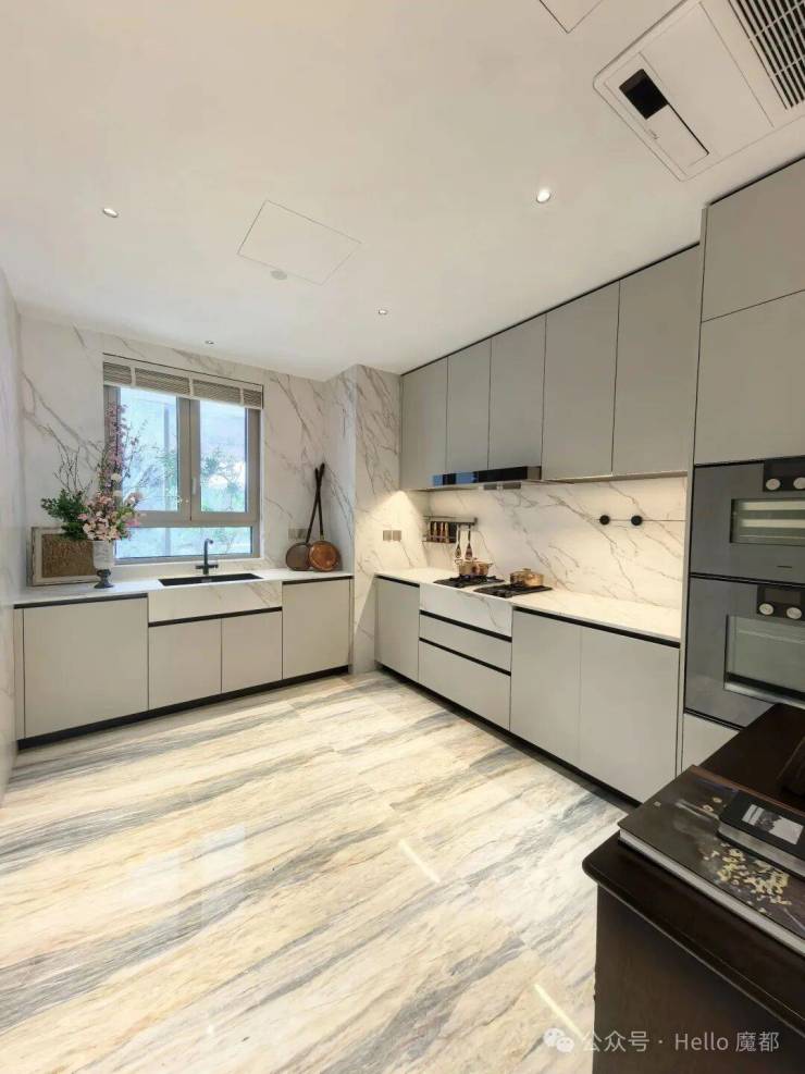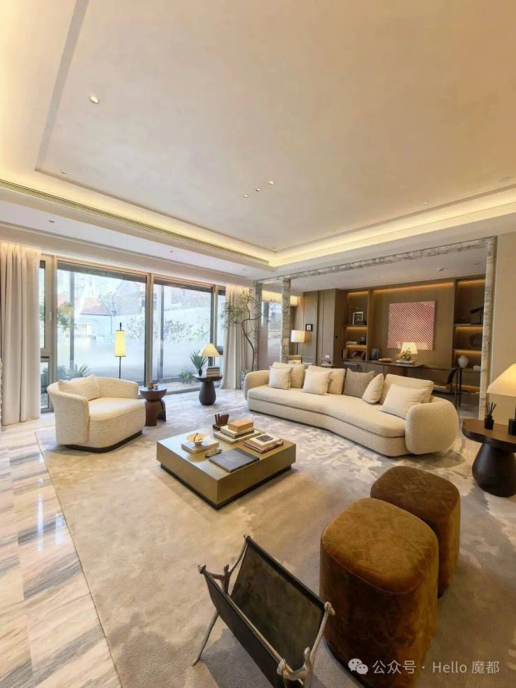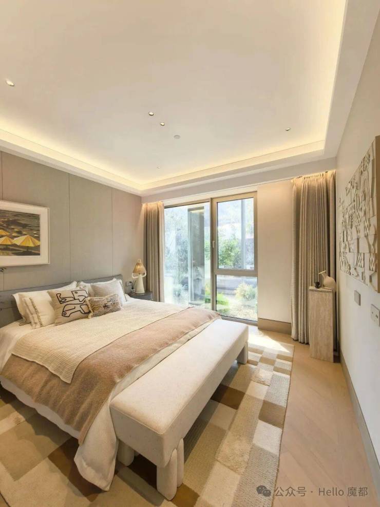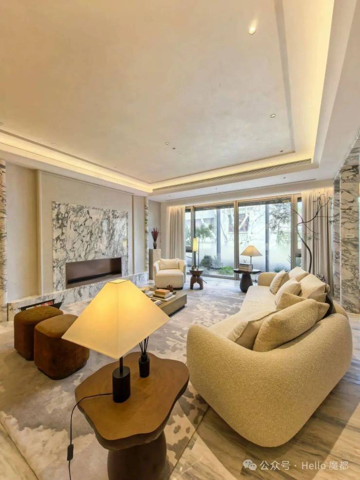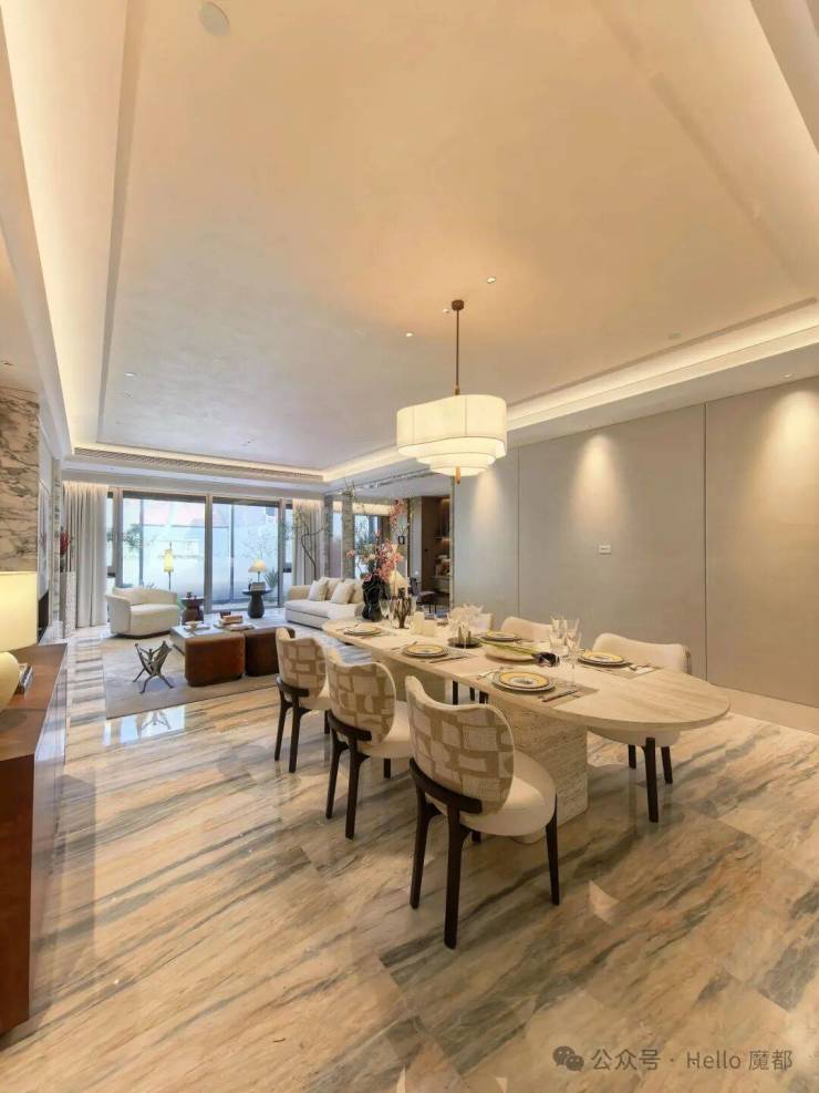 2)转角方厅,引景入室:创新采用转角方厅设计,搭配270°巨幅窗,将梧桐街景与城市地标引入室内。LDK一体化布局,零走道浪费,空间利用率与舒适度拉满。