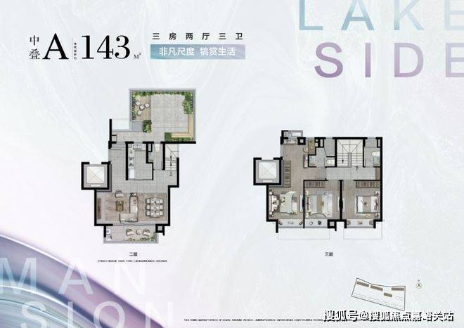 建面约143㎡中叠A户型图
