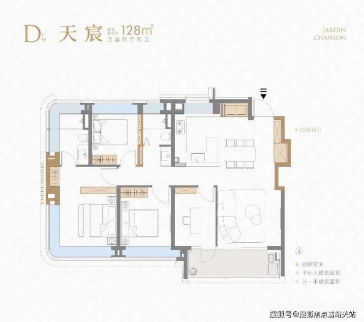 项目建面约128㎡4房同样出彩。