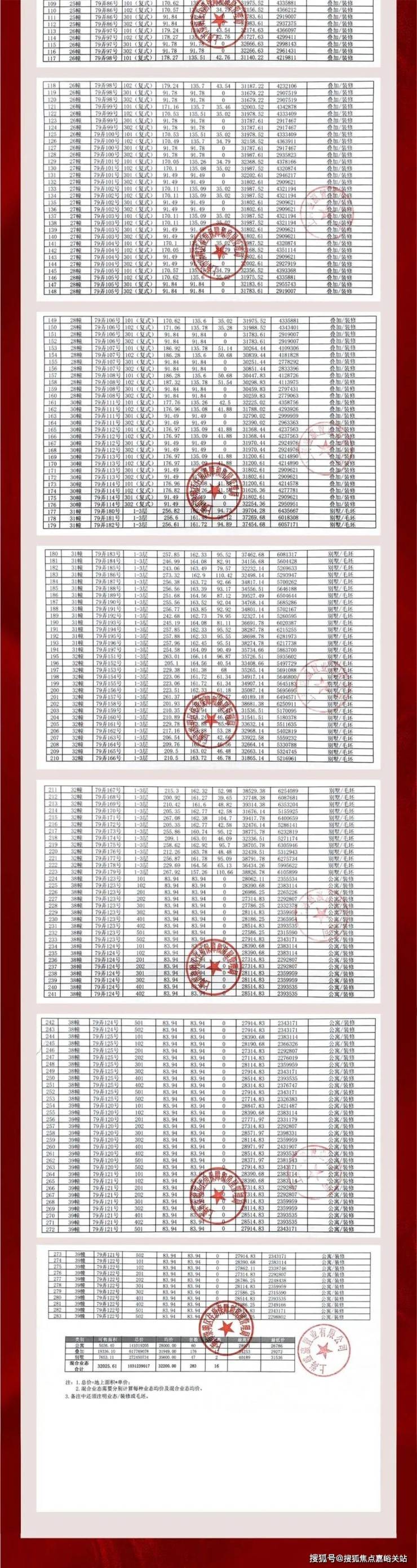 一房一价表: