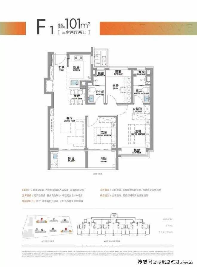 “南向双阳台+南北双飘窗”,构筑真3房户型!