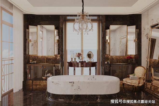 秩序,是主卫浴空间布局的重点。两个独立台盆相对而立,分属男女主人,营造出从容自如的使用体验。大面积运用黑白撞色大理石,让空间的秩序美与材质的自然美融合,颇具观赏韵味。