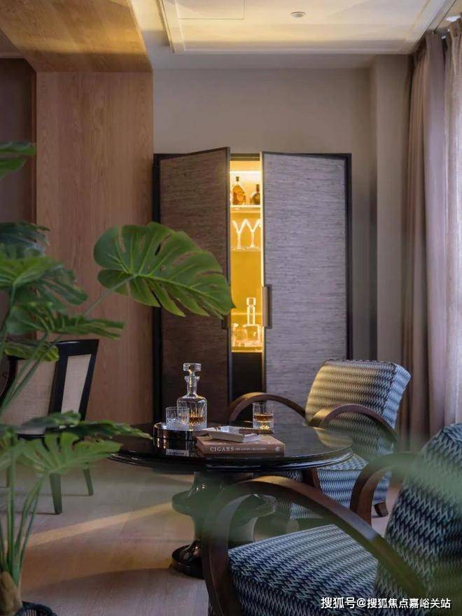 天潼里售楼处电话:400-856-9058☑️☑️客厅另一端,是连接房内与外景的介质空间,在这里主人和客人可以享受美酒雪茄。看似独立的空间,实际延伸了客厅的功能,也延伸了窗外景观到室内的视线。天潼里售楼处电话:400-856-9058☑️☑️