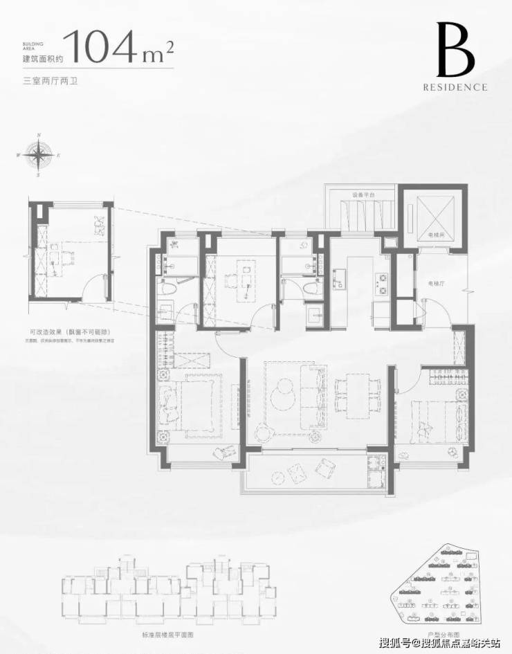 【招商中旅·揽阅】共计规划17栋12-14F小高层,首开楼栋位于整个项目的北侧,共3种户型,分别为建面约96㎡三房两卫、建面约104㎡三房两卫、建面约135㎡四房两卫。3种户型提供了全生命周期成长空间的方案。
