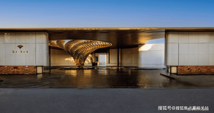 步入到整个门庭环岛空间, 海上清和玺售楼处电话:400-8894-986整个景墙的设计同样考究墙面采用中轴对称的设计布局,定制了奢石镶嵌装饰将曲面艺术与经典石器之美圆融交融,形成独一份的视觉震撼。