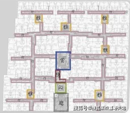 上海桃花源园林整体规制 园内布局五进制南北主轴、以及“双龙戏水”格局的双水街,巷道联通,设七大景观组团,形成“一环、两轴、七境”布局。175席中式园宅,依巷分布南北,横平竖直,秩序井然。