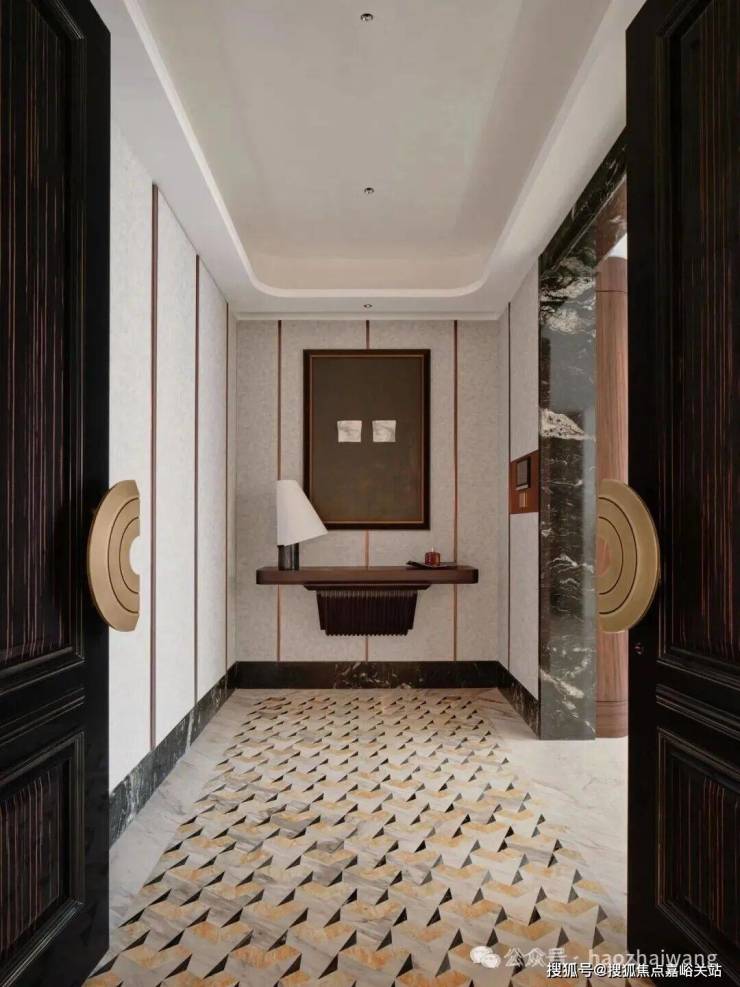 室内石材均由【英国皇家豪邸御用设计专家」的1508 London亲自挑选,在铺装前采用工厂预铺方式进行对纹编号,保证整体色泽纹路一致,每一处空间都精心带来不同的石材拼花。