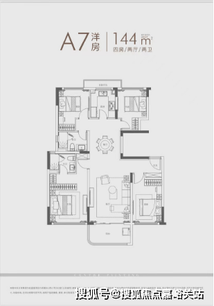 四房间呈四叶草布局分布于户型四角,互不打扰;