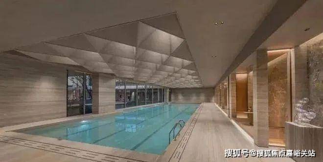 一楼有私宴厅,配有备餐间,大落地窗可以看社区景观;B1有泳池、健身设施、二楼规划有阳光草坪、落日酒吧,还有下沉式庭院,完整的售楼处实景展示可能要等到6月中旬。