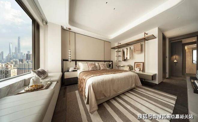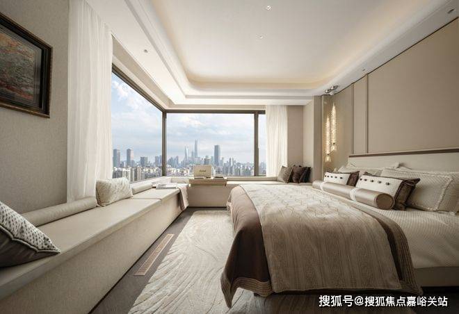更令人叫绝的是主卧270°的转角飘窗,将城市风景无界引入室内,成就“坐拥天下”的大视野格局。这种对采光、视野、通透的极致追求,让空间本身成为一种强大的精神资源。