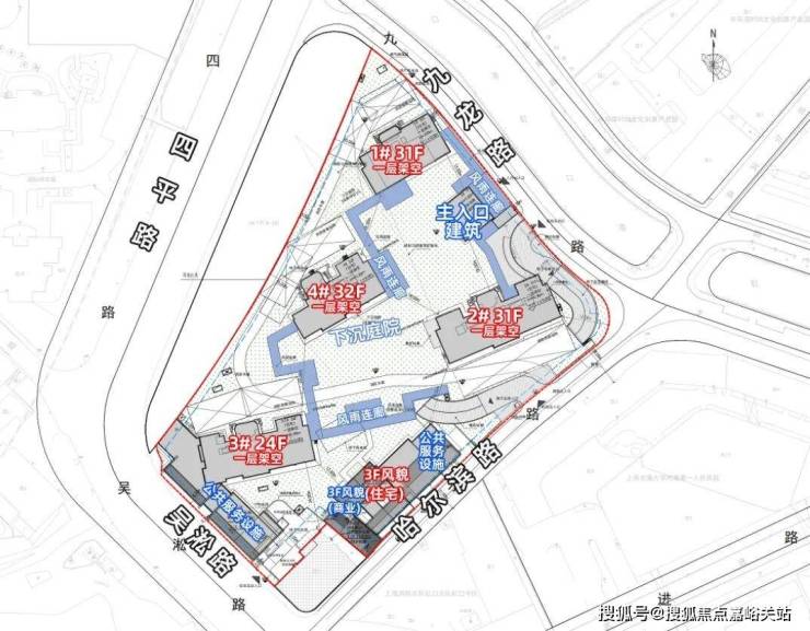 根据设计方案显示,项目拟建4幢24-31层高层住宅以及1幢总高3层的风貌建筑