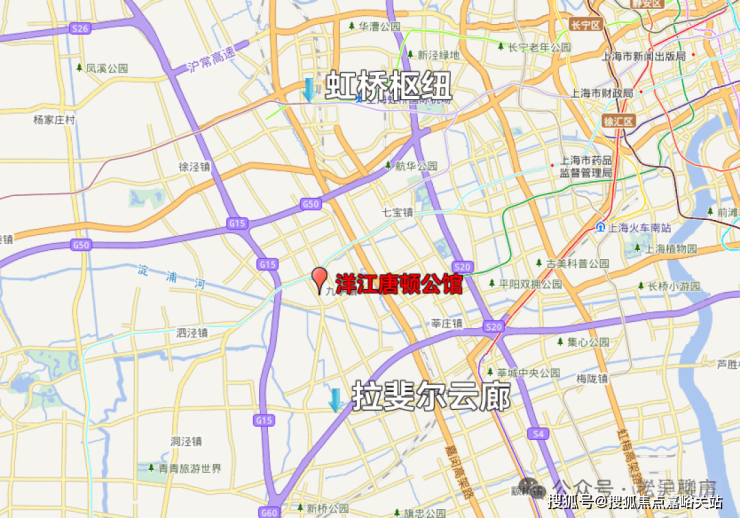 把地图范围扩大,站位整个上海,再审视洋江唐顿公馆的价格。以虹桥枢纽为圆心,徐泾已经站稳6.4万/㎡,华漕已经看到6.95万/㎡。同样价格再往远看,只能看到南大、杨行、甚至南翔。